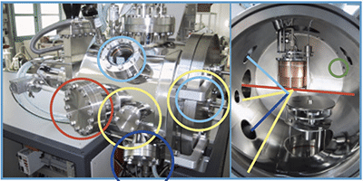 它是一个功能齐全的脉冲激光沉积系统,可用于同步加速器光束线。 该系统保持了标准PLD实验室系统的功能性,例如多靶位、高压 RHEED 、1200°C 的激光加热器以及Load lock系统. 并且针对X射线,还具有如下参数:衬底面内旋转±135°,倾斜±5°(分辨率0.001°)、水平 x / y方向距离为 ±6 mm, Z方向距离为 3 mm, 几分钟内快速开关的X射线测角器。控制机架中内置有传送和台升机构,快速定位连接,并且所有功能都可通过远程自动控制。